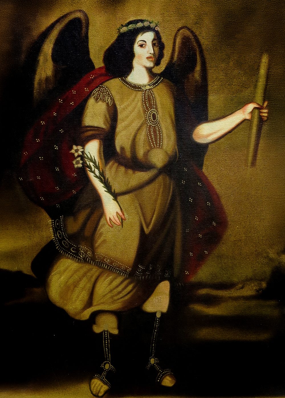 Arcángel Gabriel – Obra de arte religiosa al óleo, estilo cusqueño