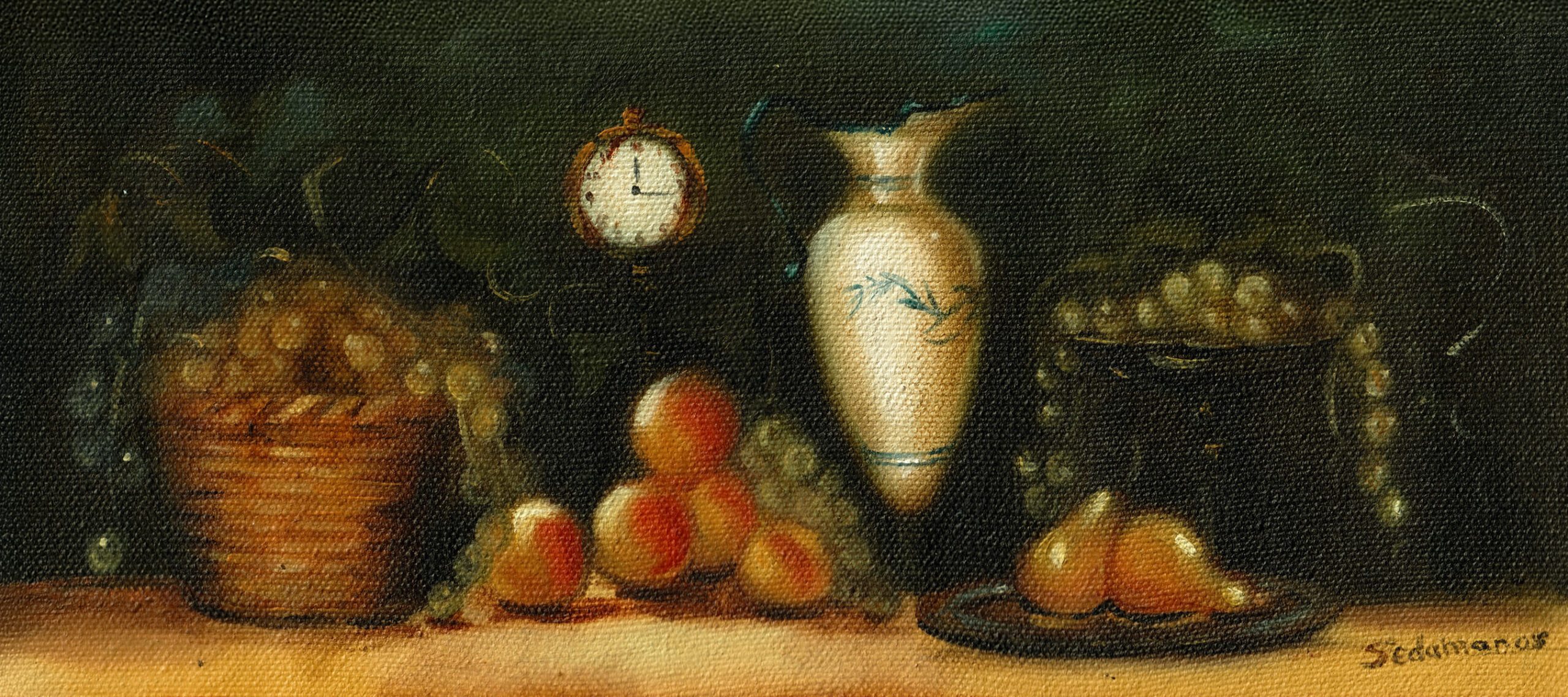 Este bodegón al óleo decorativo pintado a mano es un cuadro ideal para sala o comedor, creado con técnica tradicional sobre lienzo. La composición de frutas y objetos clásicos transmite equilibrio, calidez y un estilo atemporal que realza cualquier espacio interior. Es una pieza pensada para quienes buscan cuadros decorativos con carácter artístico y acabado profesional.