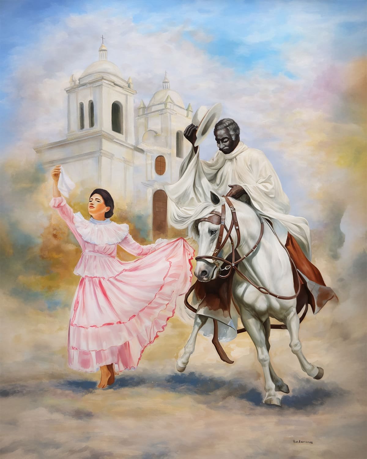 Titulo: Caballo de Paso Peruano y Marinera (Pintura al óleo)
