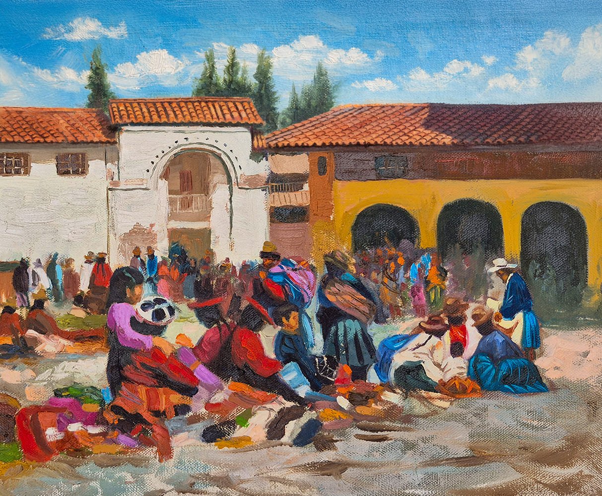 Titulo: Mercado Andino en Cusco (Pintura al óleo)