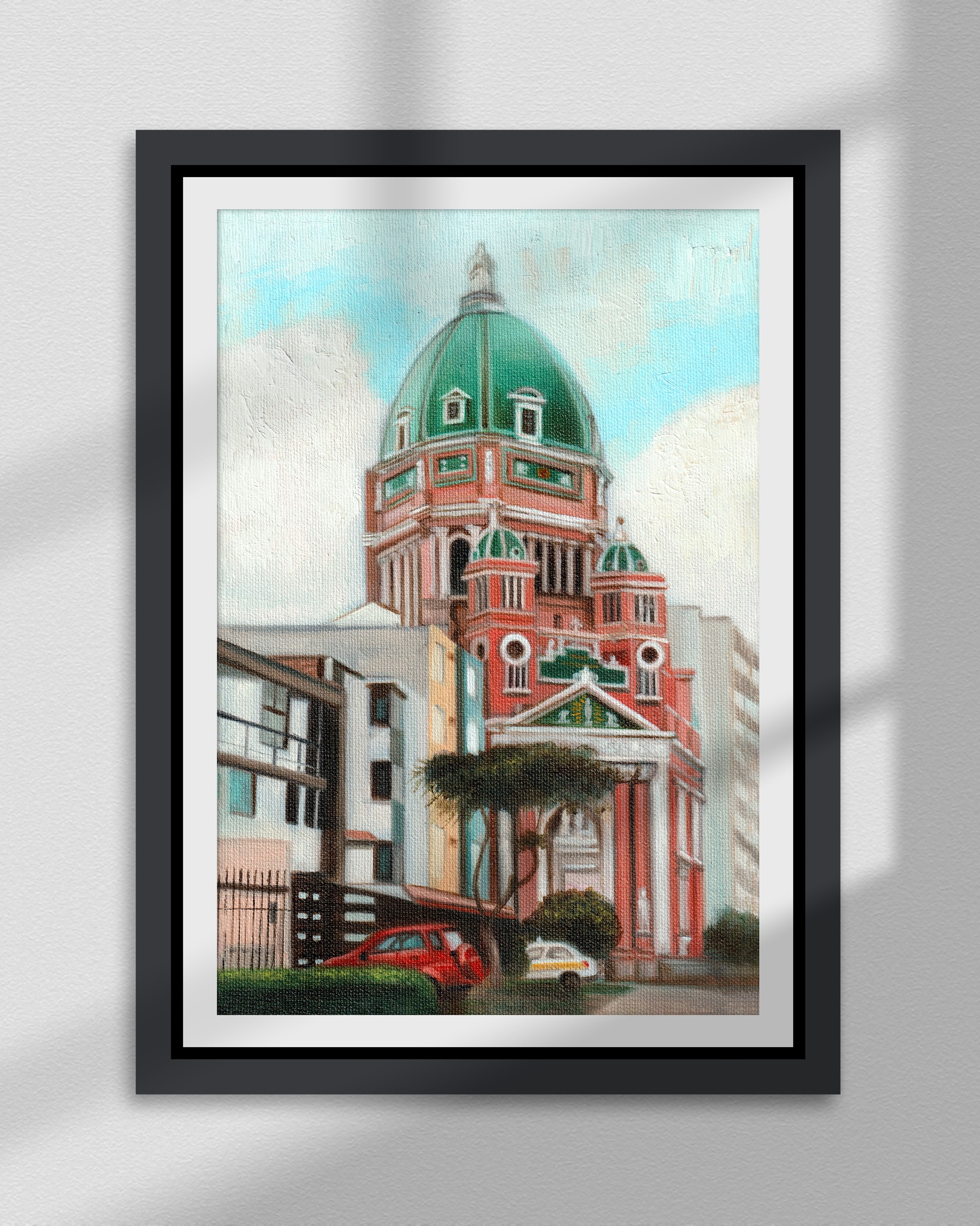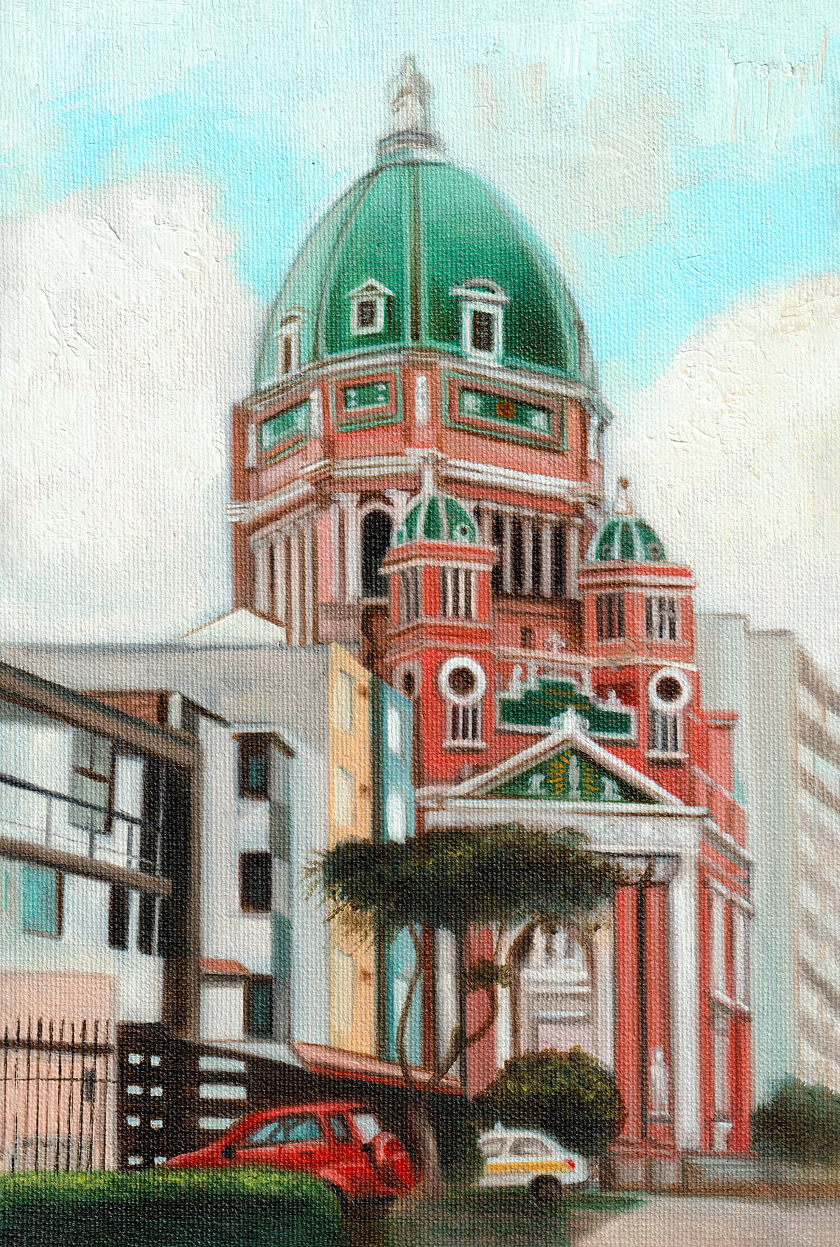 La iglesia del Inmaculado Corazón de María, conocida popularmente como La Cúpula, es un templo católico emblemático ubicado en Magdalena del Mar, Lima Perú. Esta obra al óleo captura la esencia arquitectónica y la belleza de este lugar histórico, reconocido por ser considerada una de las iglesias más altas de Lima.